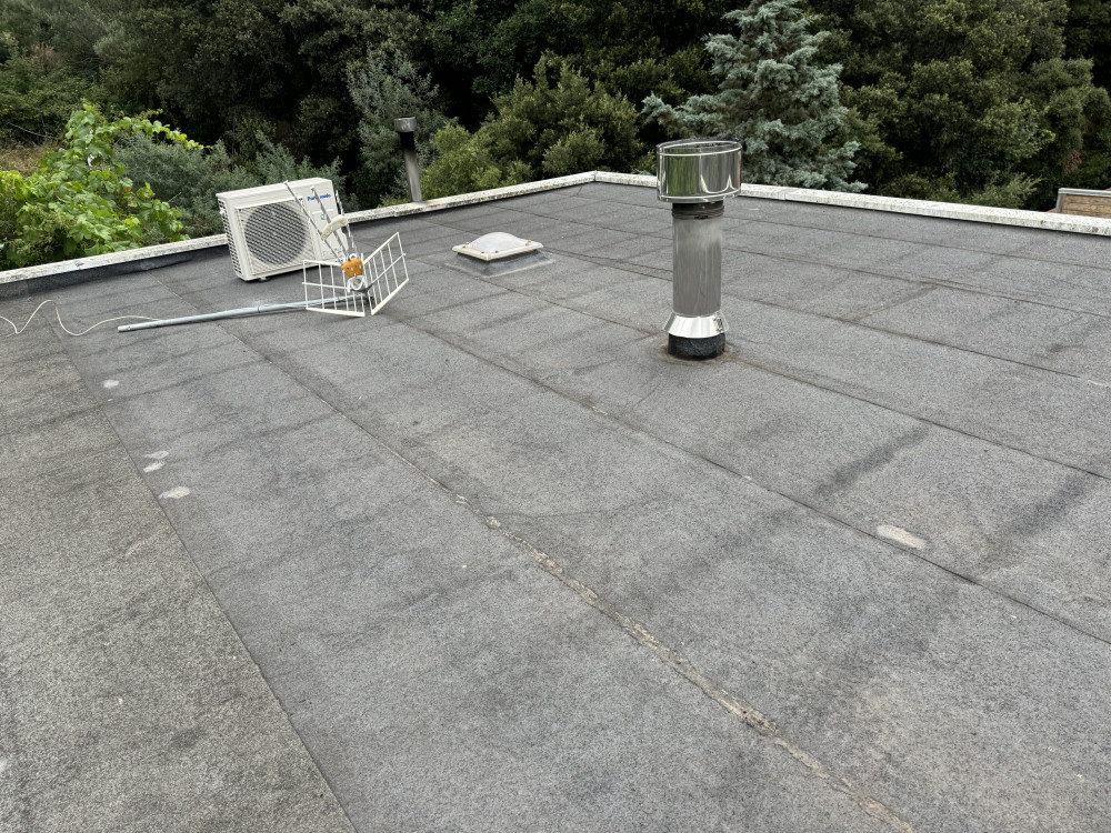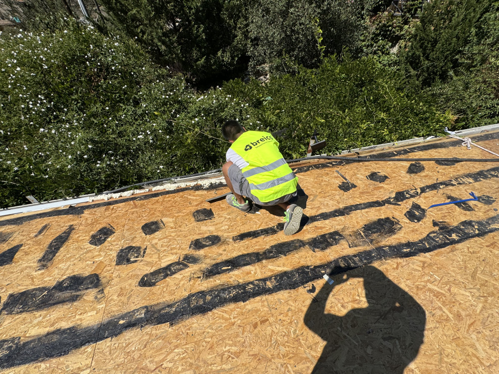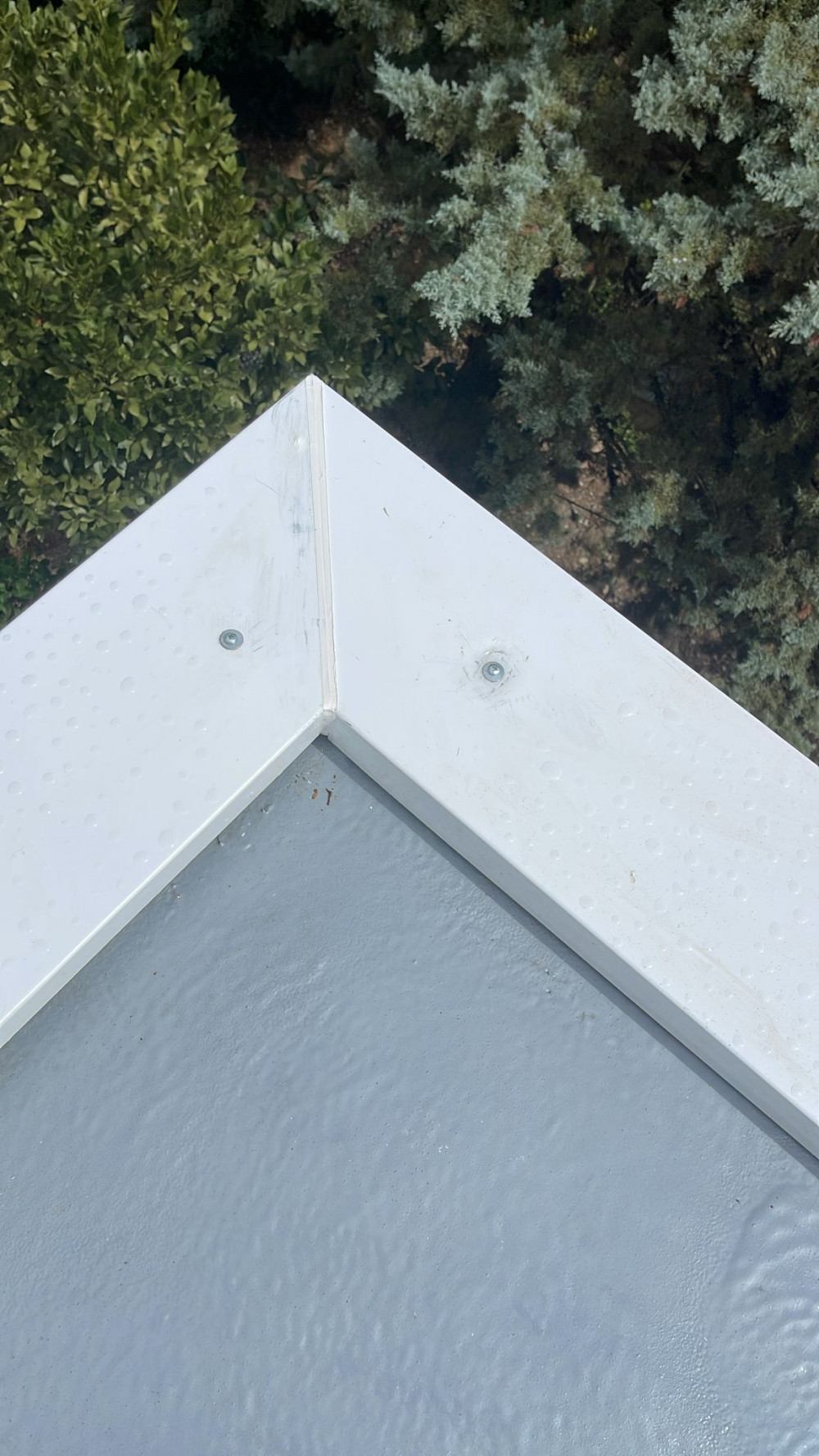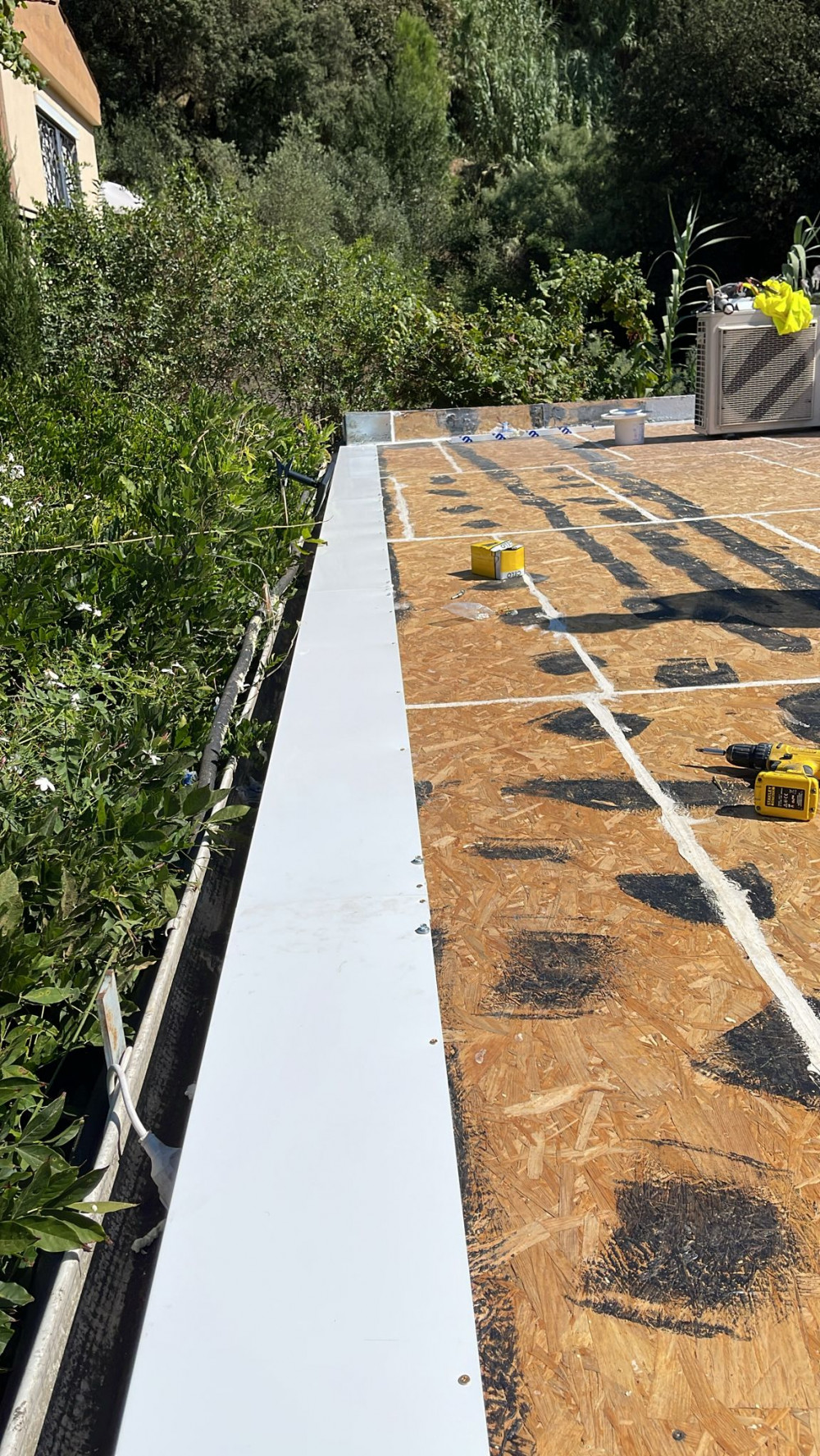 Poliurea en caliente en Barcelona: Impermeabilización de cubierta de OSB mediante derribo de lámina asfáltica existente. Reparación de cubierta plana y montaje de vierteaguas de aluminio en fachada Norte. Retirada, limpieza y reposición de cubremuros de aluminio blanco existente. Aplicación de imprimación. Aplicación de poliurea en caliente con un rendimiento de 2kg/m2. Aplicación final de protección solar Alifática color gris.